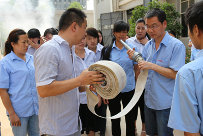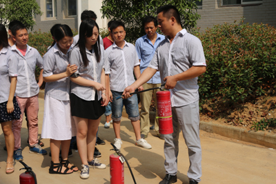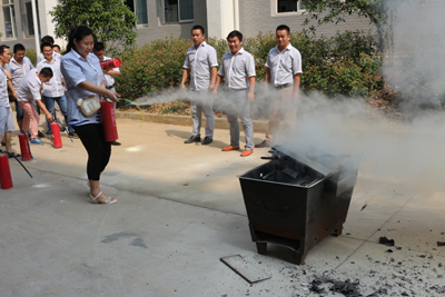 演习由公司总经理担任总指挥,车间全员参加。公司总经理首先为全体参训人员作了消防演习动员,着重讲述了安全生产和加强消防演练防范火灾发生的重大意义,增强员工防火意识;随后由公司邀请的镇消防队人员为大家讲解灭火器的基本操作方法和发现火情时的一般性处置步骤,并对本厂内各消防器材配置点的情况进行了详细说明。车间主任、组长、司机、车工等全员参与了演习。