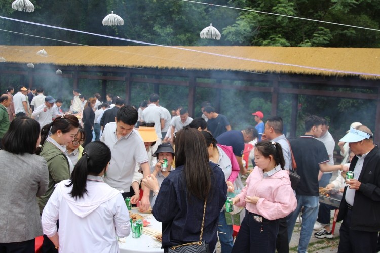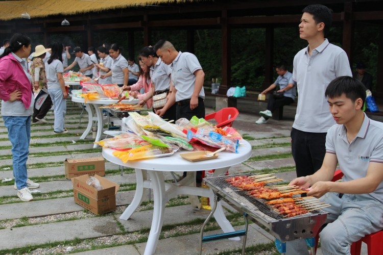 人间烟火气,烧烤恰逢时。随着团建游戏结束,大家一起前往烧烤专区。丰富的烧烤食材已经准备就绪,各小组成员井然有序地做着准备工作,新鲜的瓜果蔬菜和腌制的肉禽肉串相互搭配,宛如一幅五彩斑斓的画卷。大家纷纷展现“高超的技术”,配料、加碳、煽火、刷油、撒料……一气呵成。抬眼望去,落日余晖,映着彩霞,迎着微风,将整个天边晕染得瑰丽无比,此刻幸福和惬意有了具象化。